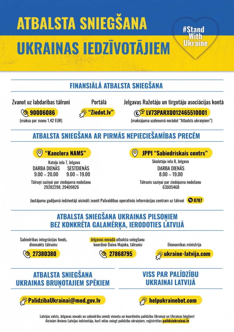 - Aktuālā informācija par atbalsta sniegšanu Ukrainas civiliedzīvotājiem Latvijā.