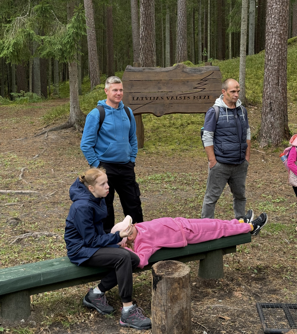 Aizvadīts tēvu un meitu pārgājiens Kalnciema meža teritorijā