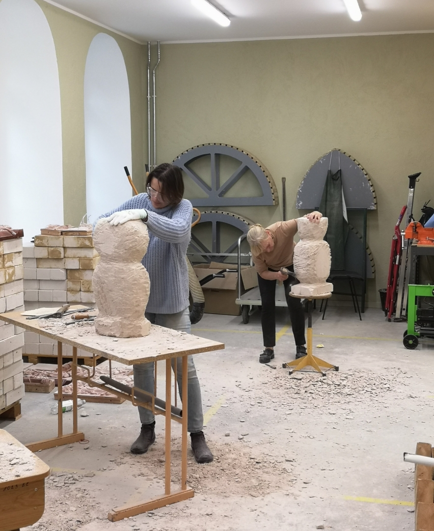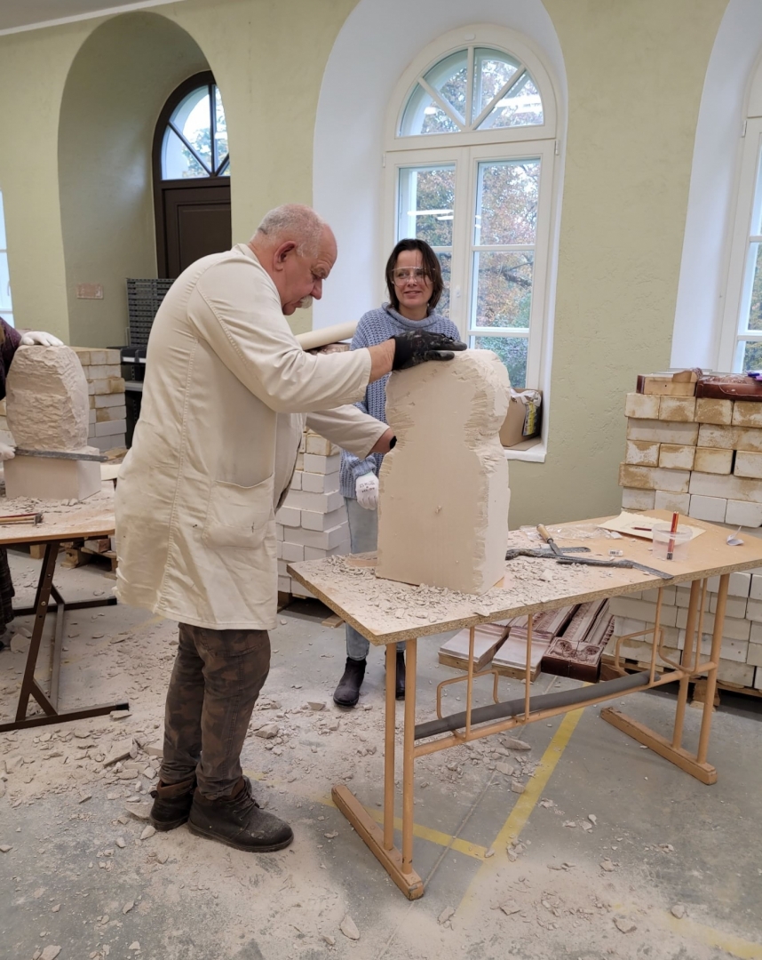 Praktiskā meistarklasē izgatavo radošas kompozīcijas un formas tēlniecības objektus no gāzbetona