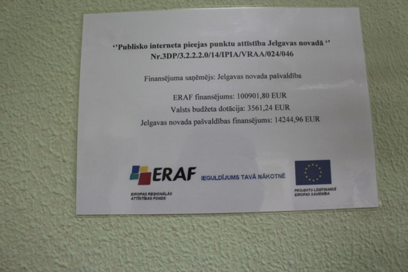 Jelgavas novada pašvaldības budžeta finansējums: 14 244,96 EUR