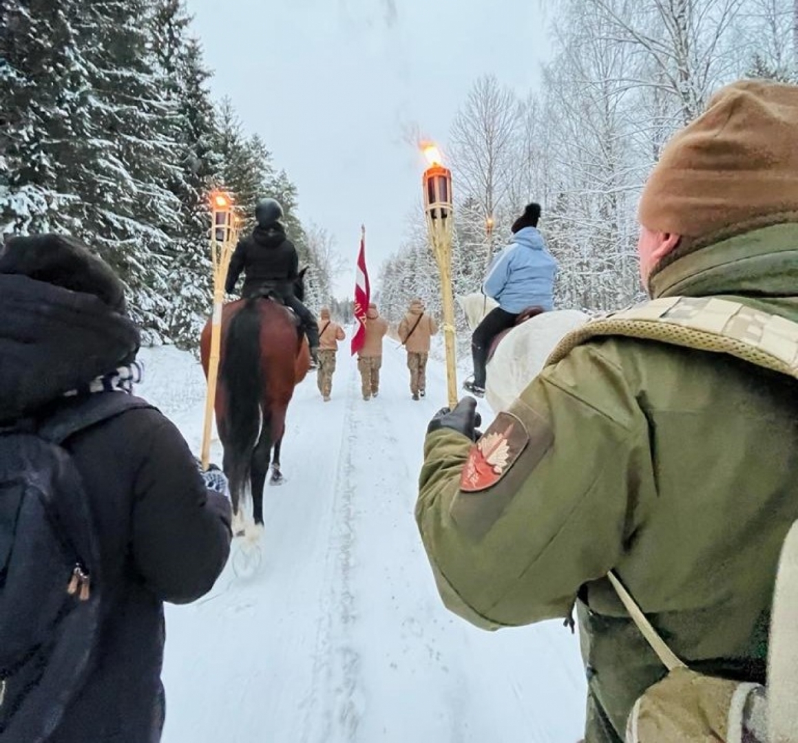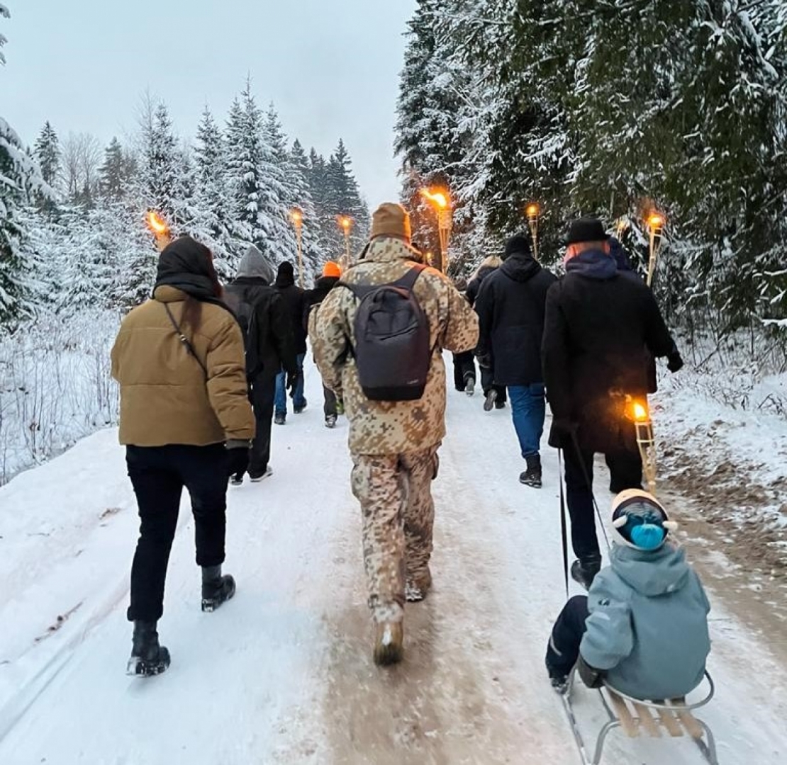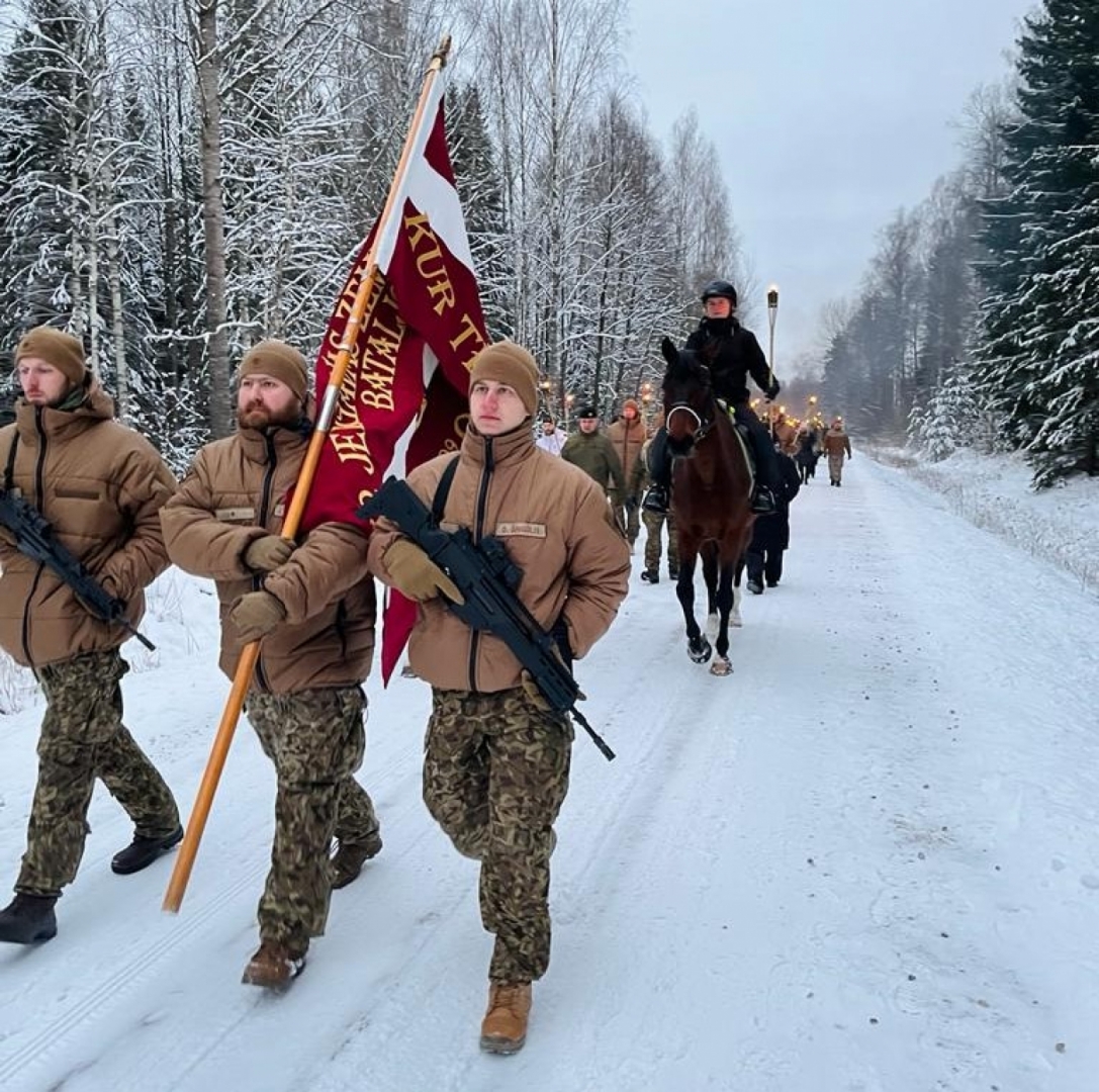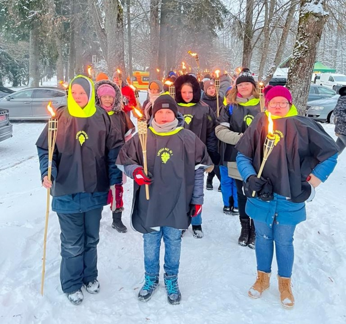 Pasākuma dalībnieki, pieminot latviešu strēlnieku varonību, devās 6km garā lāpu gājienā.