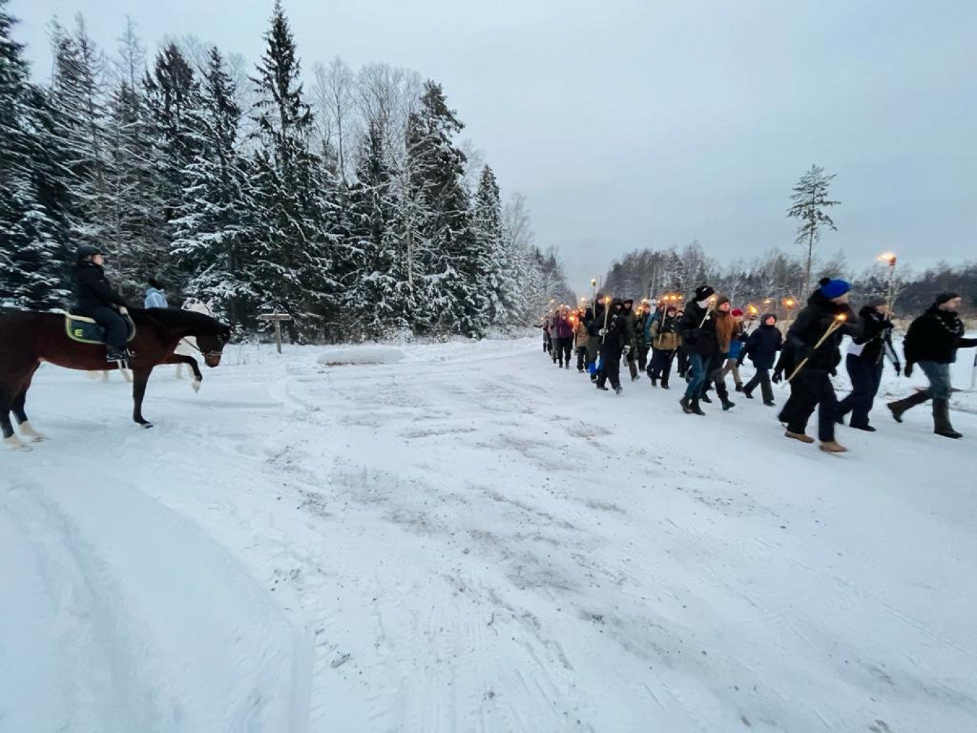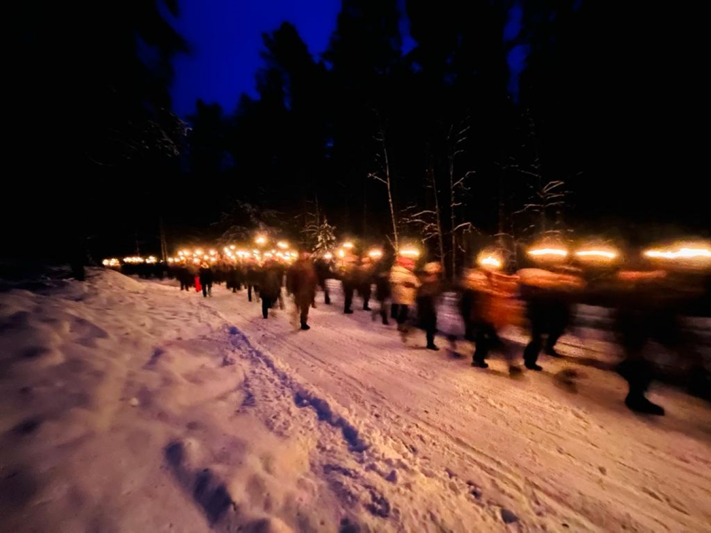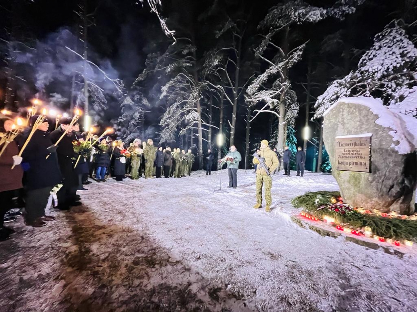 Pasākuma dalībnieki, pieminot latviešu strēlnieku varonību, devās 6km garā lāpu gājienā.