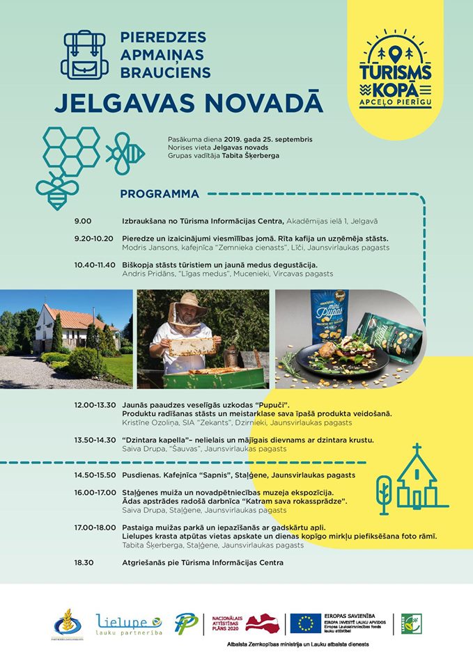 Projekta „Tūrisms kopā” ietvaros no aprīļa tikuši organizēti nu jau pieci bezmaksas pieredzes apmaiņas braucieni tūrisma jomas profesionāļiem – tūrisma pakalpojumu sniedzējiem, gidiem un tūrisma speciālistiem. 25.septembrī norisināsies pēdējais brauciens cikla ietvaros - uz Jelgavas novadu.