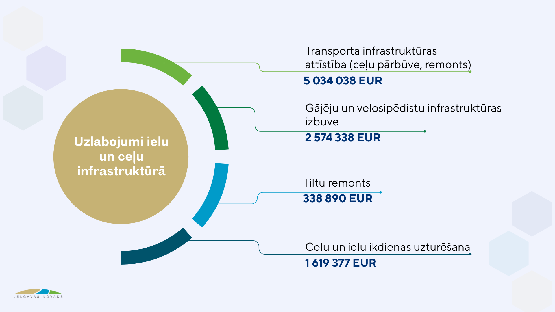 Par vienu no 2026. gada budžeta prioritātēm izvirzīta arī mobilitātes uzlabošana, šim mērķim atvēlot teju 8 miljonus eiro. Domājot par ceļu infrastruktūras attīstību, turpināsim publiskās ceļu infrastruktūras uzlabošanu, piesaistot arī Eiropas Savienības fondu finansējumu vairāk nekā 4,7 miljonu apmērā, proti, publiskās infrastruktūras attīstībai uzņēmējdarbības atbalstam ceļu pārbūve plānota piecos Jelgavas novada pagastos – Elejas, Lielplatones, Līvbērzes, Platones un Vilces pagastā. Savukārt par pašvaldības budžeta līdzekļiem plānota grants ceļu seguma atjaunošana un tiltu remontdarbi, lai nodrošinātu iedzīvotājiem drošu un ērtu pārvietošanos, kā arī iecerēta gājēju un velobraucēju infrastruktūras izveide no Staļģenes līdz Emburgai, no Ozolniekiem līdz Dalbei, Glūdā, Lielvircavā un Zaļeniekos. Jāmin, ka šogad palielināts finansējums autoceļu un ielu ikdienas uzturēšanas izdevumiem, papildu auto ceļu fondu līdzekļiem paredzot pašvaldības finansējumu 500 000 eiro apmērā.