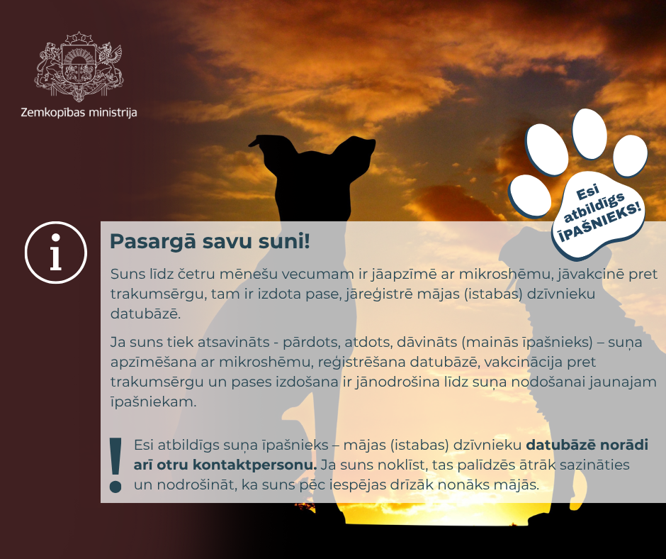 Atbildība sākas ar katru no mums! Parūpēsimies, lai mūsu mīluļi būtu drošībā, veseli un labi aprūpēti.